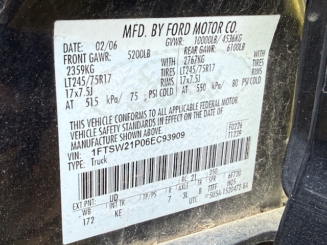 Vin #1FTGW21Po6EL93909
